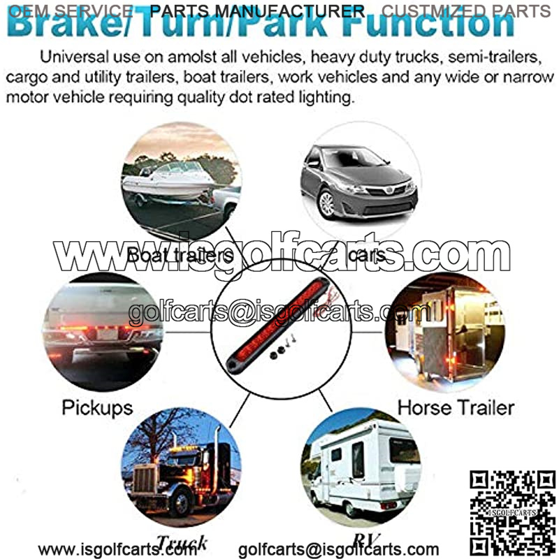 Functions as Marker Lights, Clearance Lights, Side Marker Lights, Identification Lights, Stop Lights, Turn Lights, Tail Lights, Rear Indicator Lights, Brake Lights, Roof Lights, Rear Bumper Lights, Auxiliary Driving Lights…Widely used in Heavy Duty Trucks, Semi Trailers, Cargo Trailers, Boat Trailers, work Vehicles and a Wide or Narrow Overland Vehicle Requiring Quality DOT Rated Lighting.