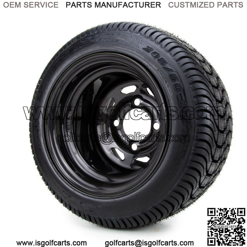 10″ Black 8 Window Steel Golf Cart Wheels & Tires (205-50-10) Set of 4