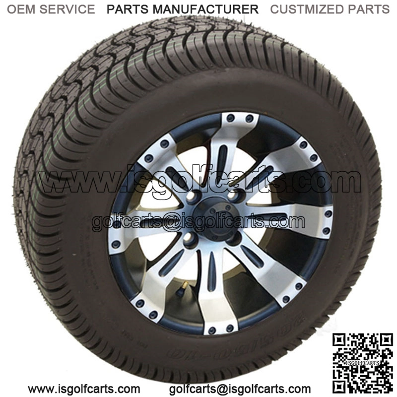 10” Machined Matte Black Wheels on your choice of Street Low Profile Tires Details: Set of 4 mounted golf cart tire and wheel assemblies 16 Chrome Lug Nuts 4 Center Caps Machined Matte Black Wheels 10×7 with 4×4 bolt pattern with ET-25 offset This combo will NOT require a lifted cart Tire Options: – Select from the list of Low Profile Tires below *Please select Standard (and Club Car) or Metric (Yamaha) Lug Nuts*