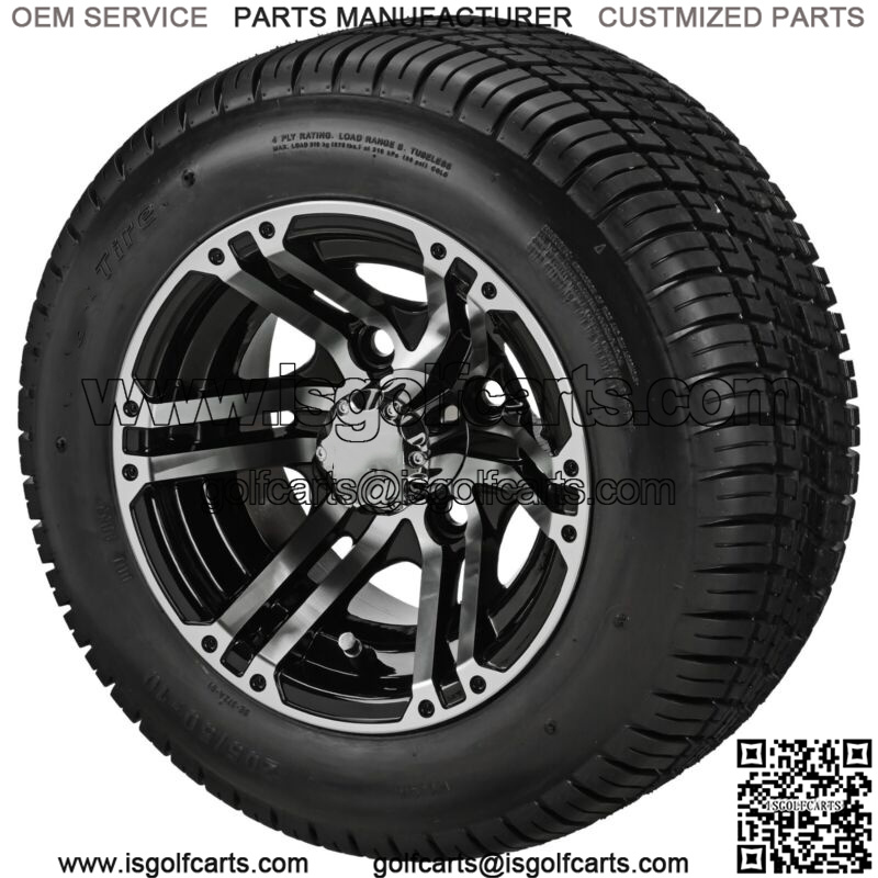 10″ Terminator Black/ Machined Golf Cart Wheels W/ 205/50-10 Low Profile Tires