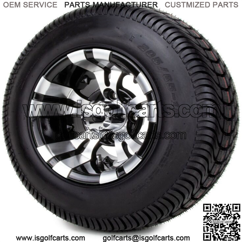 10″ Vampire Machined and Black Golf Cart Wheels and Tires (205-65-10) – Set of 4