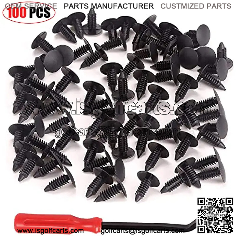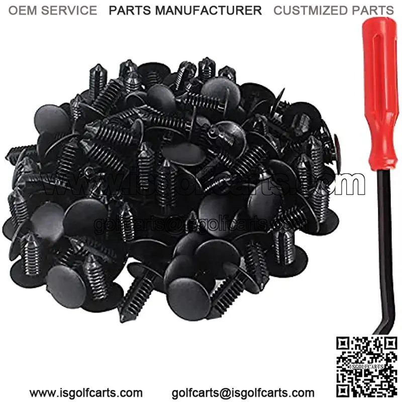 Package Contents 100 PCS Nylon Rivets Fasteners Push Retainer Kit and One Fastener Remover,fit for EZGO Yamaha Club Car with a plastic body part.