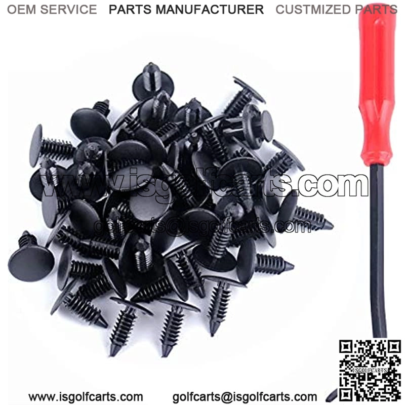 100 Pcs Plastic Fastener Push Pins Universal Fit Electric/Gas Yamaha Golf Cart X-Mas Club Cart EZGO TXT RXV Tree Rivets Clips Replace# 1010434, 16816-G1, 16816-G2, 10-9150-NS, 90269-06028