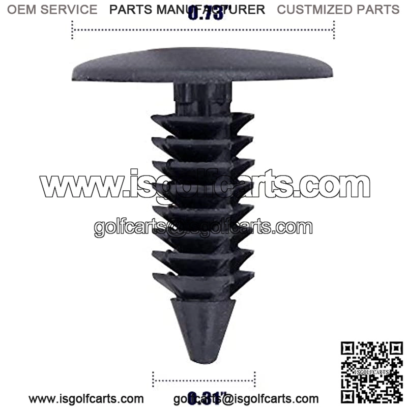 They are universal X-Mas tree rivets that can be used on pretty much any application on ezgo as your choose, such as fender flare, wheel browGolf cart deck fixed modified tree rivets??Replacement Xmas Tree style push rivet for most golf carts electric & gas modelsFits the Following Cart(s): golf carts with a plastic body EZGO Club Cart YamahaThe rivets made of plastic, directly replace the old rivets on the original deck without drilling, make your golf cart a new lifeEquipped with removal tool, easy to install, rivets size: 1/4″ x 3/4″, Package Included: 100 pcs plastic push rivets, 1 pcs removerGolf Cart Tree Rivets Clips50Pcs Golf Cart Tree Rivets Clips and One Plastic Fastener Remover Universal Fit Electric/Gas Yamaha Golf Cart X-Mas Club Car EZGO TXTone fastener remover Nylon Rivets Fasteners Push Retainer Kit 100PCS Installation Method50 Pcs Plastic Fastener Push Pins Compatible Set of Complete Body Metal Rivet Hardware Kit Golf Cart Windshield Upper Latch Retaining Clips Golf