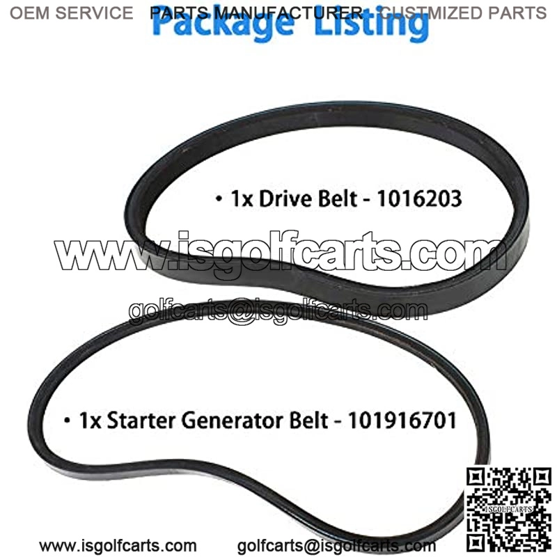 One Drive Belt and one Starter Generator Belt replacement for Golf Cart Club Car DS 1997-UP, Precedent 2004-UP.