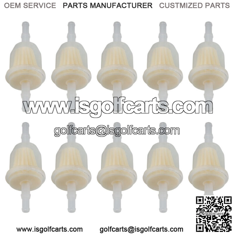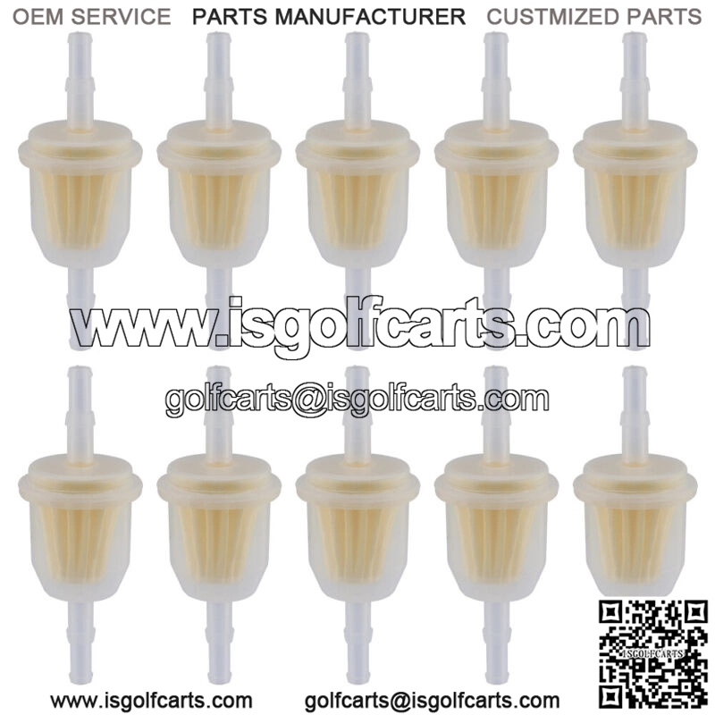DescriptionReplacement Aftermarket PartCondition: Brand New Replace OEM Part Number: Ariens: 21541500,Bobcat: 38283, 38666,Bunton: PM244,Club Car: 1013684, 1014522, 102003201,Craftsman: 24688,Cub Cadet: OCC-25 050 22,E-Z-GO: 72084-G01,Exmark: 1-303197, 109585, 303197,Grasshopper: 101001,Gravely: 21410800, 21541500,Jacobsen: 552265,John Deere: AM116304, AM1163041, GY20709,Kohler: 25 050 03-S, 25 050 08-S, 25 050 22-S, 25 050 22-S1,Kubota: E7187-82150,Lesco: 050311,Onan: 149-2206-01, 149-22061-01,Subaru: 263-65011-A0, 263-65012-A3,Toro: 71-5960, 98021,Stens: 120-436,Yamaha: JN3-F4560-00, JN6-F4560-00 Fitment:SPECS:Fits Fuel Line 1/4″, 5/16″ IDLength 3 1/2″Micron 30UMNot compatible with greater than 10% ethanol fuel Compatible with Bobcat:930000-936406A Power Units and Hydro Drives; 36″”, 48″” and 61″” XM Series Walk-Behind Compatible with Bunton:Hydraulic Handle Bar and Hydro & Belt Drive Walk-Behinds; 36″”, 48″”, 52″” and 61″” decks Compatible with Club Car:4-cycle, gas, 1992 and newer
