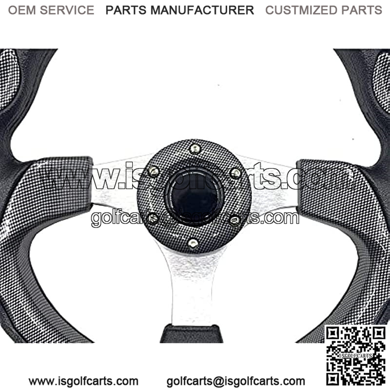 There are Golf Cart Steering Wheel for Club car DS, Club Car Precedent, EZGO and Yamaha Golf Carts This golf cart steering wheel gives you better control of your golf cart. The spokes are brushed aluminum, Durable PVC material.Horn button is for aesthetic purpose only. 12.5 Inch Outer Diameter is fit for Most Golf Cart and Passenger Car and can be used on various Golf Carts, Go-Karts, Dune Buggies, ATVs, UTVs, Side-By-Sides, Street Rods & Hot Rods with similar mounting dimensions. Steering Wheel must be installed with Adapter (Required and sold separately).