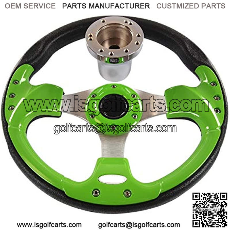 12.5 Inch Lime Green Golf Cart Steering Wheel for Yamaha G16-G29 Drive / Drive 2 Gas & Electric Models, Classic Super Sport Center Logo, Brushed Aluminum Spokes and Anti-Slip Grip