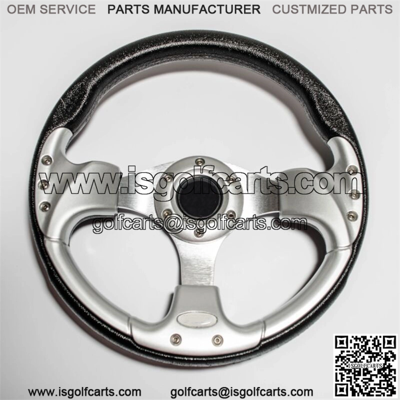 6 Hole Pattern Steering Wheel Silver Grip Black Trim For EZGO TXT/ RXV Club Car DS/ Precedent Yamaha G22, G29 Golf CartThis Steering Wheel needs a cart specific hub adapter which is NOT included in this listing.Stylish brushed aluminum center. Horn button is for aesthetic purpose only.Adding a custom Steering Wheel gives you better control of your cartEasy installation, Instructions are included.