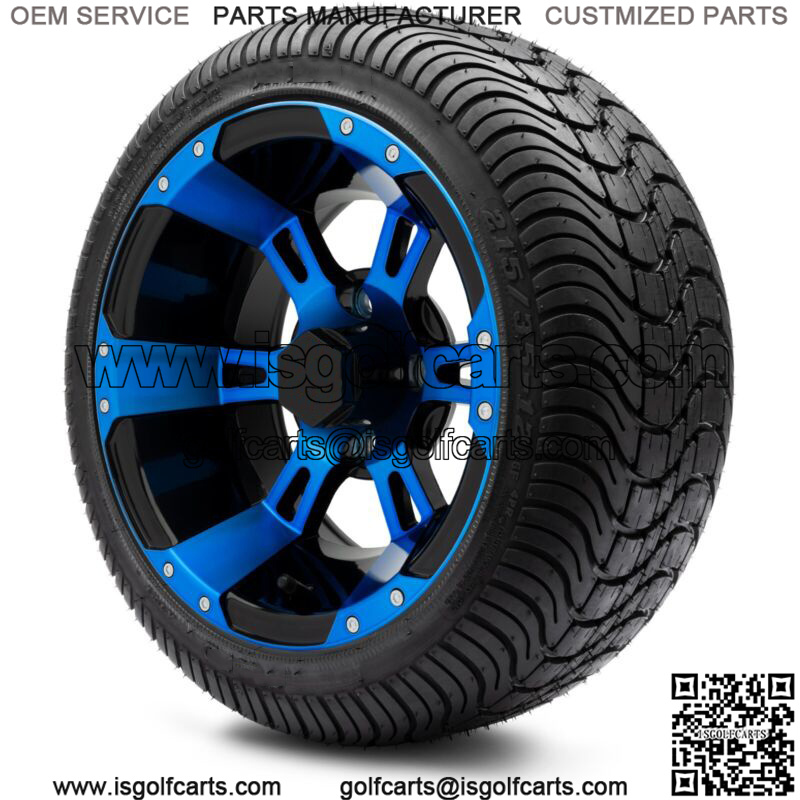 12″ Ambush Blue and Black Golf Cart Wheels and Tires (215-35-12) – Set of 4