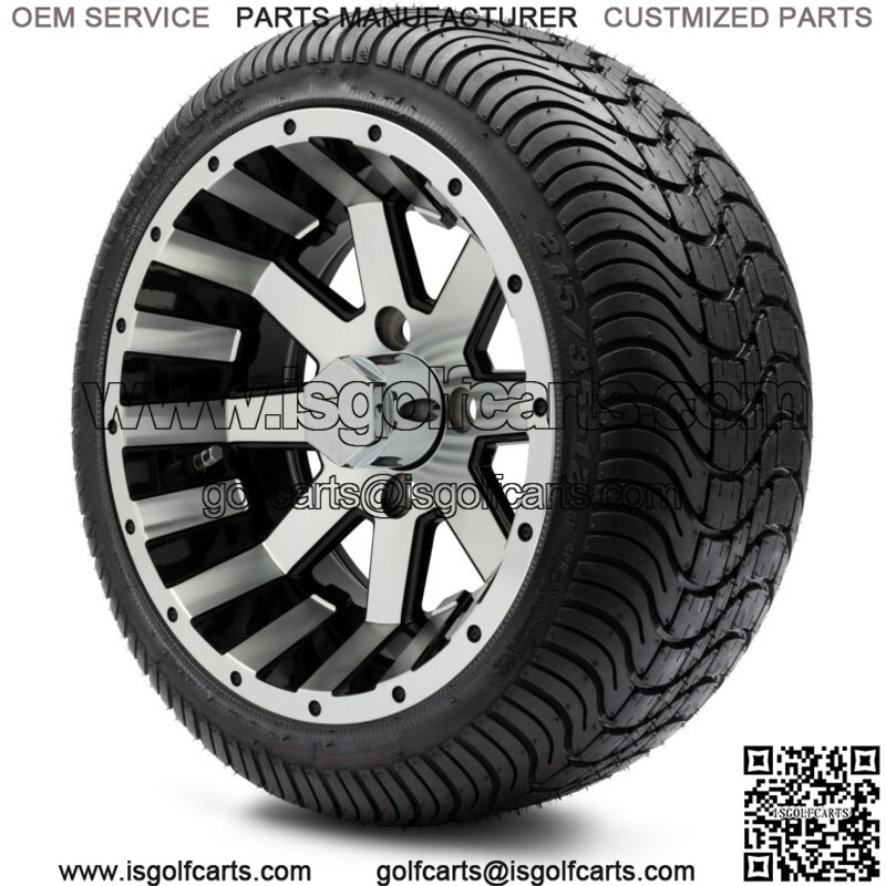 12″ Assault Machined and Black Golf Cart Wheels and Tires (215-35-12) – Set of 4