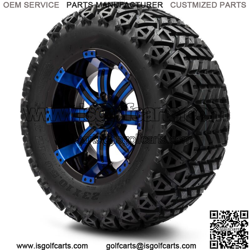 12″ Blue and Black Golf Cart Wheels and Tires (23×10.50-12) Set of 4