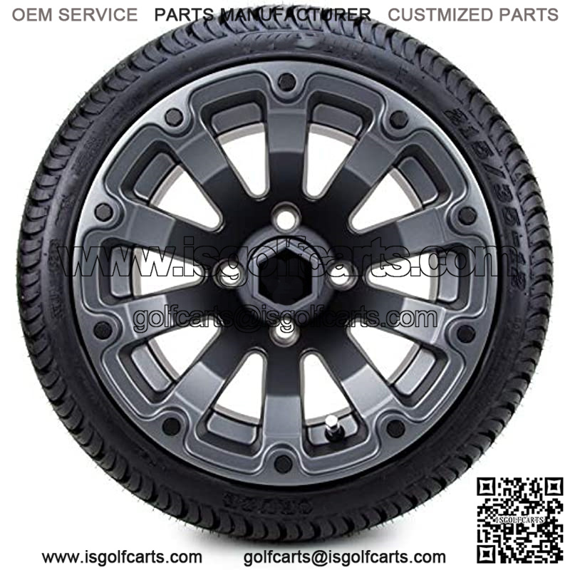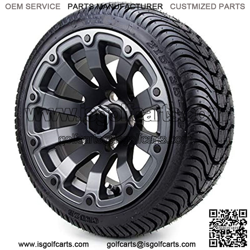 12″ Bomber Matte Gunmetal Golf Cart Wheels and Low Profile Tires Combo Set of 4