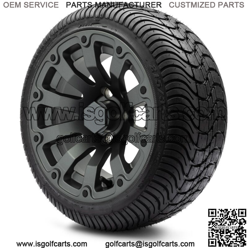 12″ Bomber Matte Gunmetal Golf Cart Wheels and Tires (215-35-12) – Set of 4