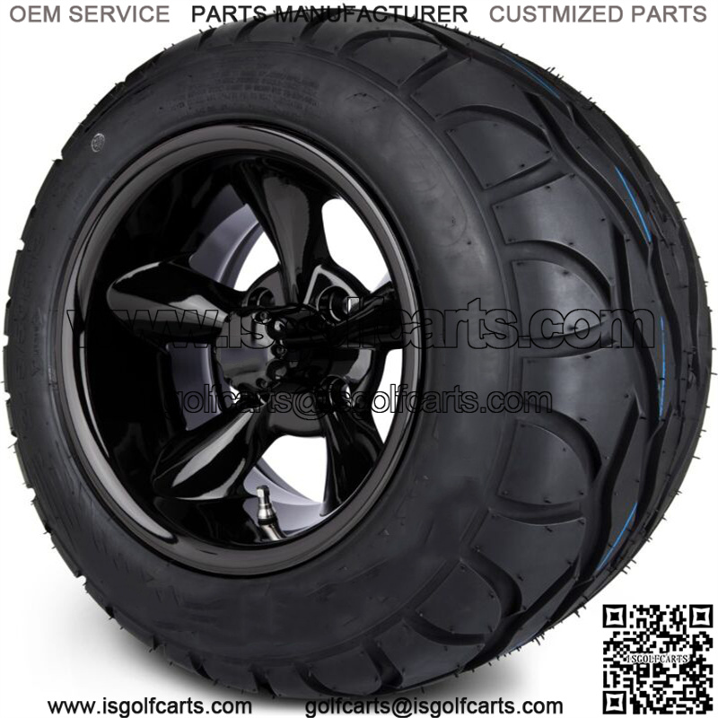 12″ Godfather Glossy Black Golf Cart Wheels and Radial Tires (245/50-12)