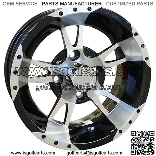 12″ Golf Cart Rim, Machined/Black Wheel & Center Cap, 12×7 ET-25 Aluminum wheels include center caps. Lug nuts sold separately. PRODUCT INCLUDES 1 RIM.