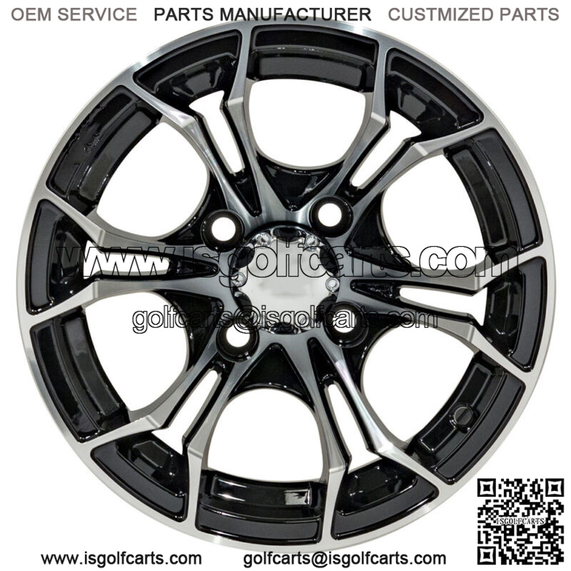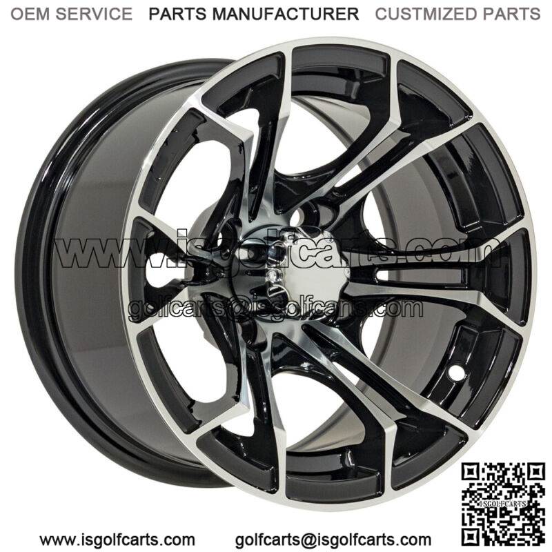 12 inch Machined and Black Golf Cart Wheel | 3:4 Offset | 4×4 Bolt