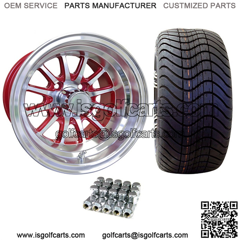 Classic, sporty looking 12″ Wheels from – now offered in several awesome colors! The 12″ Phoenix ined/ Colored wheel combo will set your golf cart apart! We wrap these wheels up in high-performance street hugging, Turf Safe 215/35-12″ RXLP Low Profile tires which are street legal. This wheel set includes:(4) Brand new Phoenix ined 12×7″ wheels (Choose Your Color above!)(4) Brand new RXLP 215/35-12″ street and turf tires (Turf Safe and DOT approved)(4) Sets of lug nuts (chrome)(4) Chrome center capsFREE professional mounting and FREE shippingWill Work/Fit On (no lift): All Golf Carts (any EZ-GO, Yamaha)Tire size: 215/35-12″Tire height (ground to top of tire): 18.5 inchesPly Rating: 4-plyDOT Approved : YESTurf Safe YESWheel Offset: ET-25Max Load: 800 lbs. @ 20 psiBolt Pattern: 4×4 (101.6mm)This combo will fit will fit ALL: EZ-GO Golf Carts, Golf Carts and Yamaha golf carts without the need for a lift kit.Order today with confidence!