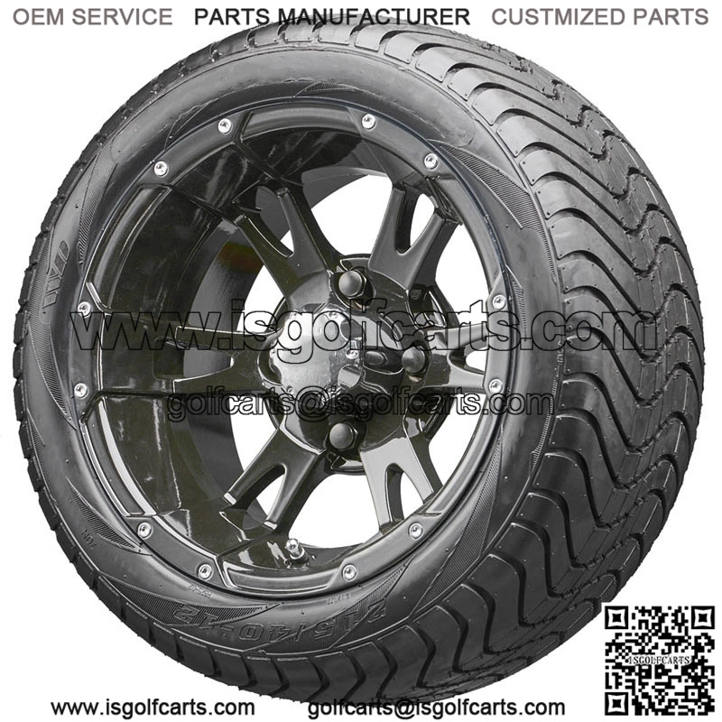 12” RX321 Black Wheels on your choice of Street Low Profile Tires Details: Set of 4 mounted golf cart tire and wheel assemblies 16 Black Lug Nuts 4 Center Caps Black RX321 Wheels 12×7 with 4×4 bolt pattern and ET-25 offset This combo will NOT require a lifted cart Tire Options: TIR-345 215/40-12 DOT 4 Ply TIR-372 215/35-12 DOT 4 Ply [$15] TIR-344 215/50-12 DOT 4 Ply [$30] TIR-342 225/55-B12 DOT 4 Ply [$75] 215/35-12 = 17.9″ Tall – 8.5″ Wide (fits all models) 215/40-12 = 18.5″ Tall – 8.5″ Wide (fits all models) 215/50-12 = 20.5″ Tall – 8.5″ Wide (fits RXV/TXT/Yamaha Drive without a lift) 215/55-B12 = 21″ Tall – 9.0″ Wide (fits RXV/Yamaha Drive without a lift) *Please select Standard (and Club Car) or Metric (Yamaha) Lug Nuts*