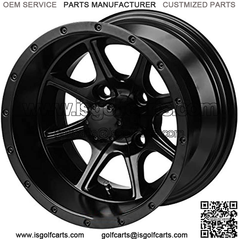Paint it BLACK! This 12″ TREMOR MATTE BLACK SS street wheel and tire combo not only looks amazing on your cart, but is also made with extremely high quality materials. If you’re looking for a bolt-on, no lift kit required wheel and tire combo, this matte black golf cart wheel set wrapped with Low Profile DOT (street legal) and turf safe tires are exactly what you need.