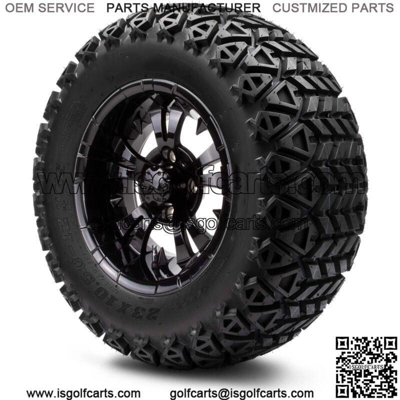 12″ Vampire Glossy Black Golf Cart Wheels and Tires (23×10.50-12) – Set of 4