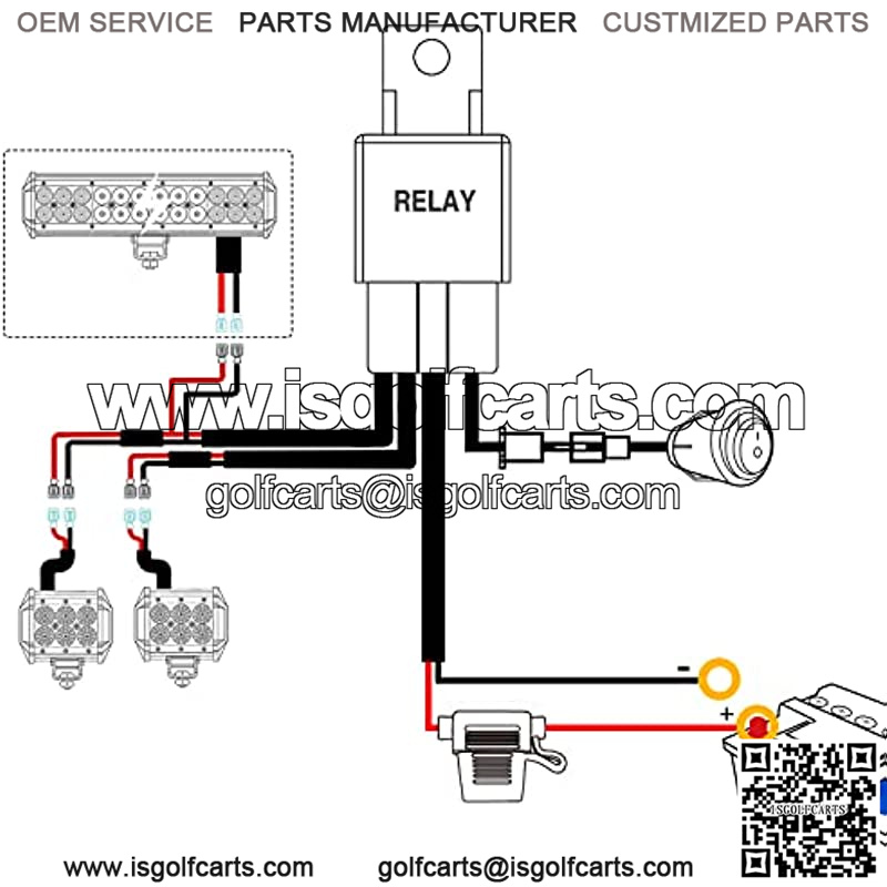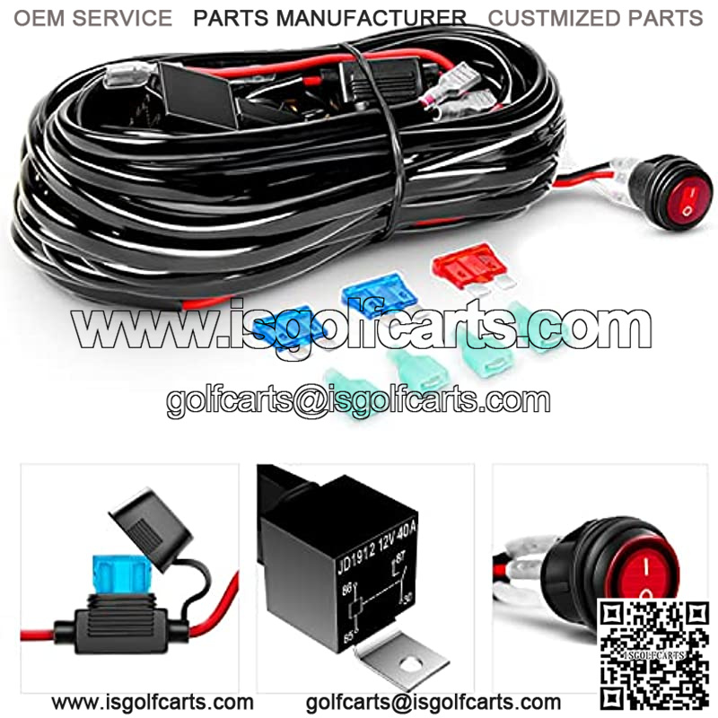 HEAVY DUTY WIRING HARNESS: The wiring harness contains an on /off switch, relay and fuses, with 2 Sets of light output connectors for dual lighting fixtures less than 180W