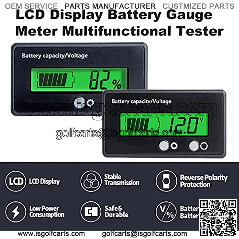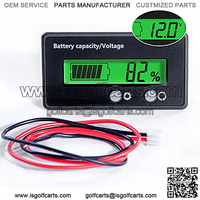 12V 24V 36V 48V Battery Capacity Indicator Golf Cart Voltage Meter with LCD Display Green Backlight, Waterproof Monitor Gauge Digital Voltmeter Testers for 3S-26S Lithium Battery&Lead-Acid Batteries