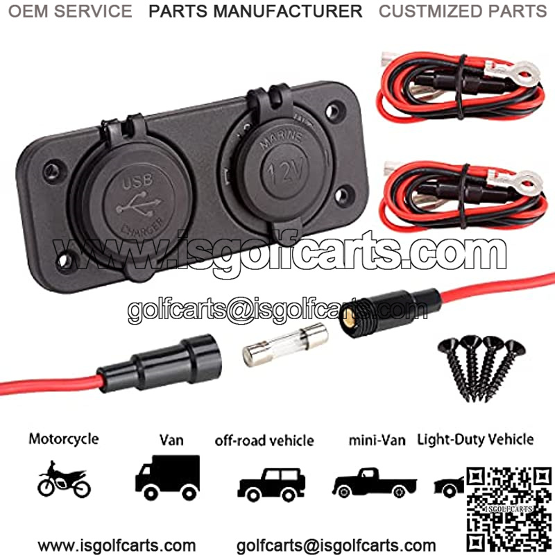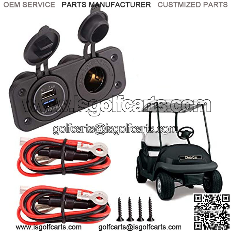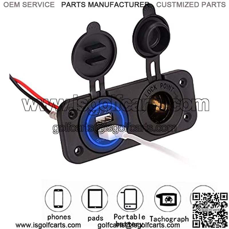 12V Dual USB Quick Charger Socket, Cigarette Lighter Power Outlet Panel for EZGO Club Car Yamaha Golf Cart, Boat, RV, Truck