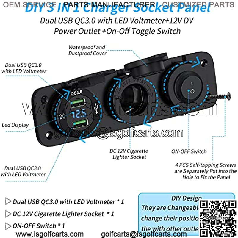 3 in 1 Cigarette Socket Panel: This 12V Outlet Socket Panel Designed with Dual QC3.0 USB Car Charger with LED Voltage Indicator + 12V Cigarette Lighter Outlet + LED Rocker Toggle Switch. Also Detachable to Replace Other Charger Sockets or Anything Else that Fits.