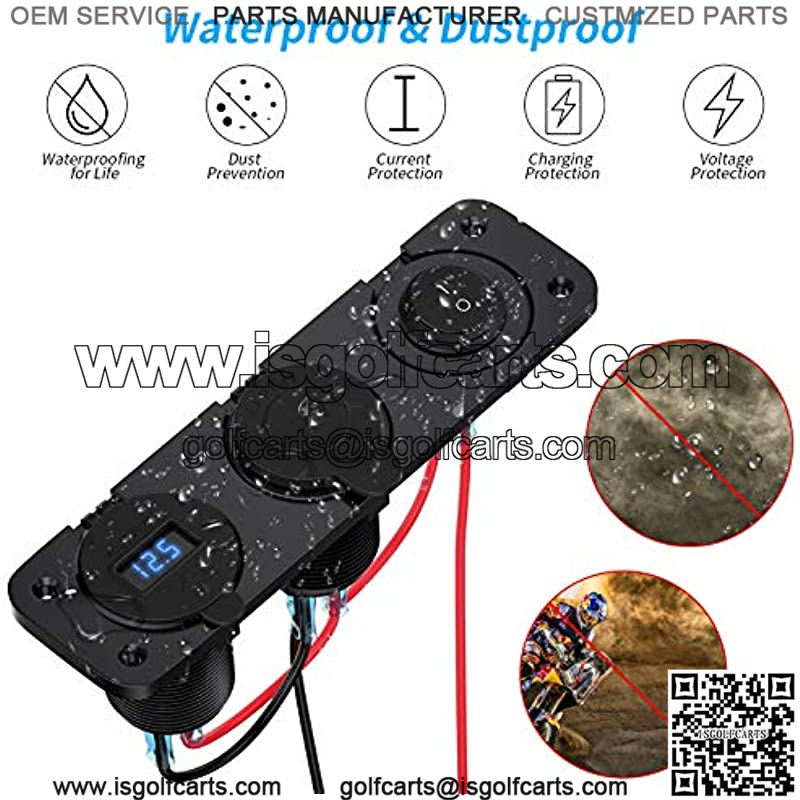 12v Outlet Socket 12 Volt USB Outlet Panel Prewired 3 in 1 Cigarette Lighter Socket Quick Charge 3.0 with Dual USB Socket,LED Voltage Display and Toggle Switch for Marine Boat Truck RV