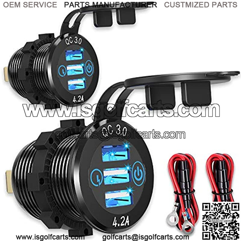 ![12V USB Aluminum Car Charger [2-Pack], Qidoe Quick Charge 3.0/4.2A Triple USB Outlet 12V Socket with Touch Power Switch, Waterproof Car Adapter for Car Boat Marine Bus Truck Golf Cart RV Motorcycle - Image 2](https://isgolfcarts.com/wp-content/uploads/2025/10/CDQ.009414.jpg)