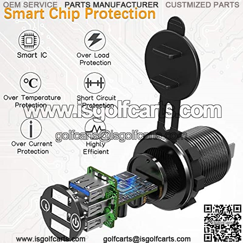 ![12V USB Aluminum Car Charger [2-Pack], Qidoe Quick Charge 3.0/4.2A Triple USB Outlet 12V Socket with Touch Power Switch, Waterproof Car Adapter for Car Boat Marine Bus Truck Golf Cart RV Motorcycle](https://isgolfcarts.com/wp-content/uploads/2025/10/CDQ.00941.jpg)