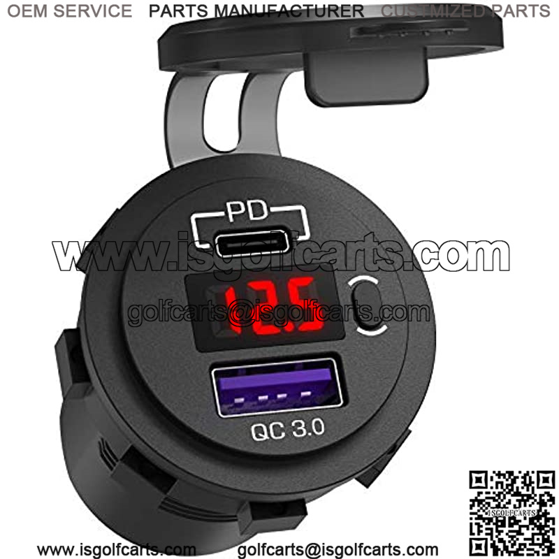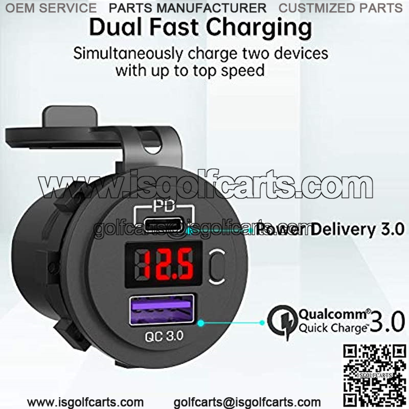 12V USB C Car Charger Socket, Ouffun Dual PD & QC 3.0 Ports 12V USB Car Outlet Adapter with Button Switch, lPhone Fast Charger with 23.7 Inches Wire for Car Boat Marine Bus Golf Cart RV Motorcycle