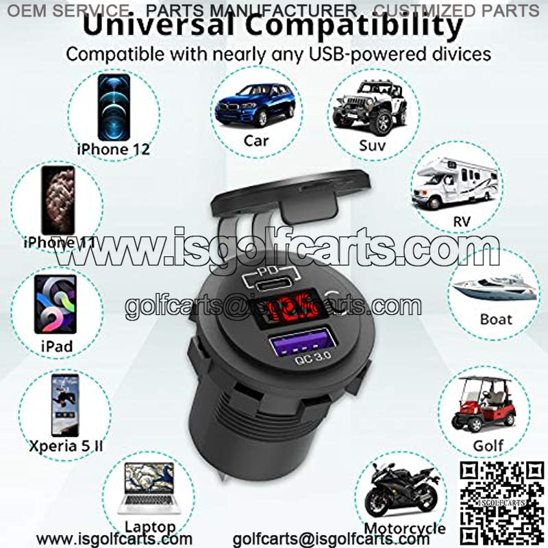 ?? One for All??Designed to fit almost any USB-powered devices such as iPhone, iPad, Samsung, LG, Switch, Camera, MP3 etc. and compatible with most 12V/24V vehicle such sa Car, Boat, Golf Cart, SUV, RV, Motorcycle etc.