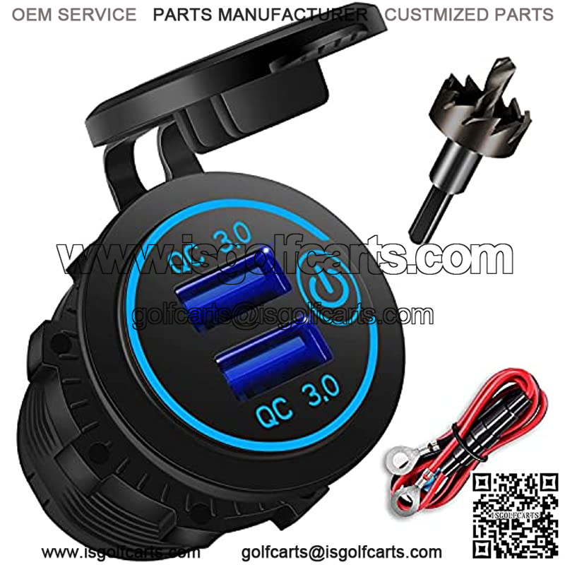 12V USB Outlet, AlfredDireck Dual Quick Charge 3.0 USB Car Charger with 1.1inch Puncher, Waterproof 36W USB Power Outlet with Switch for 12V/24V Marine Boat Motorcycle Truck Golf Cart