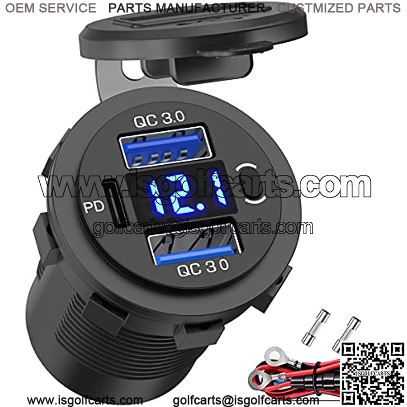 12V USB Outlet Qidoe Dual 18W Quick Charge 3.0 Port & 20W PD 12V USB C Car Charger Socket with Voltmeter and Power Switch, Waterproof Multiple Car USB Port Adapter for Car Boat Marine Truck Golf RV