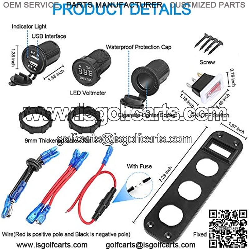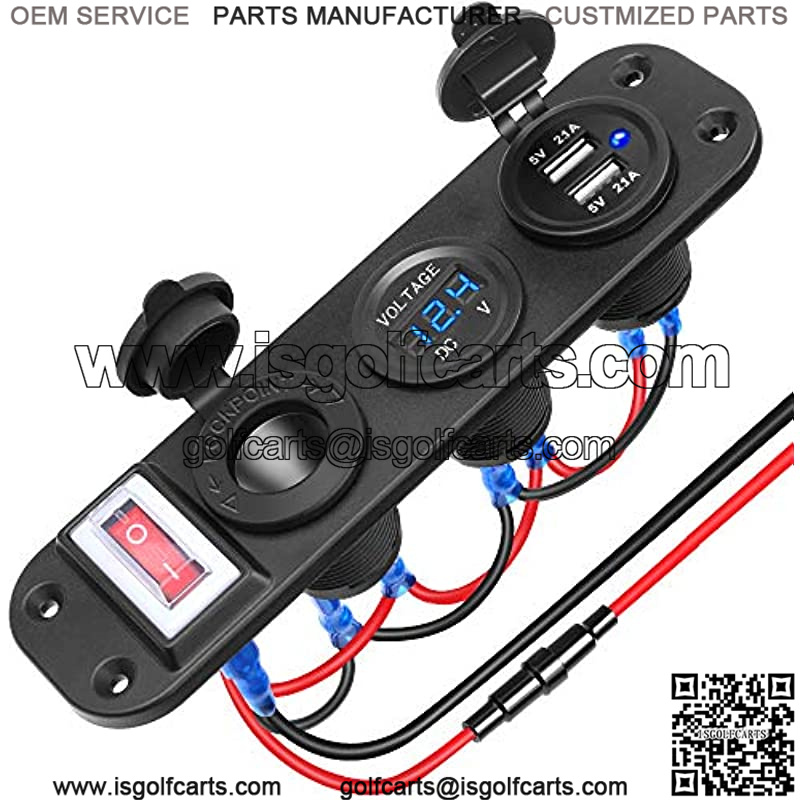 The voltmeter monitors the voltage of your car in real timeDual 5V/2.1A USB charging ports, which can be connected to fast charging at the same timeWith waterproof cigarette lighter socket, you can charge most small electronic devices in your carYou can install it in any position: vertically, horizontally or under the dashboard or on any flat surface, etcUse outdoor environment standards for structure and circuit designSuitable for DC 12-24V car, boat, marine, motorcycle, ATV, RV, truck, golf cart and moreON/OFF rocker switch, energy-saving and device protection, expanding lifespan of the device