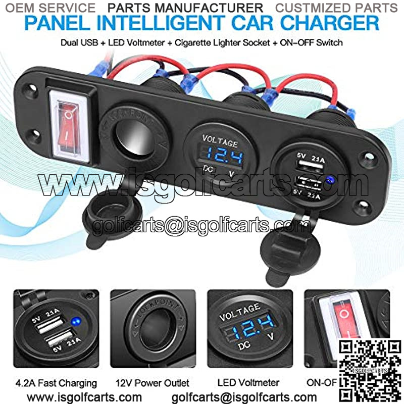 12V USB Outlet Socket Panel, Waterproof Cigarette Lighter Socket Dual USB Car Charger 2.1A & 2.1A with LED Voltmeter ON-Off Rocker Toggle Switch for Car Boat Marine Motorcycle RV DIY Kit
