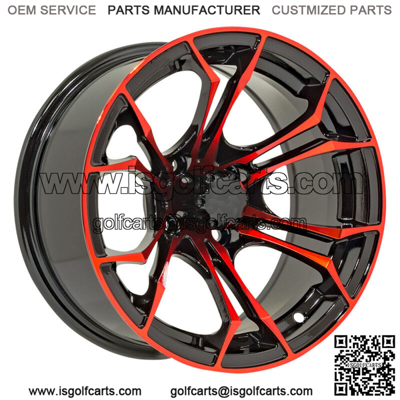 12×7 Black/Red Golf Cart Wheel | 3:4 Offset | 4×4 (101.6mm)
