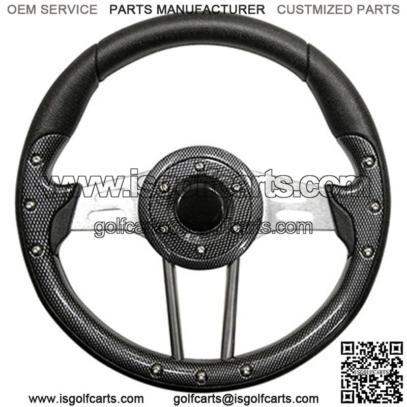 Give your golf cart a high-end sporty feel with this race-inspired Aviator Carbon Fiber golf cart steering wheel from ! Works with all EZ-GO Golf Cart models and model years; just select your steering wheel adapter color from the drop-down menu above!This high performance Carbon Fiber/Aluminum steering wheel is an easy way to upgrade both the look and feel of driving your golf cart. The ergonomically designed hand grips feel much more comfortable than stock steering wheel grips and look beautiful!Works For: All EZ-GO golf carts (, RXV, , P, , and more)Steering Wheel Color: Carbon Fiber Grips / Aluminum SpokesAdapter Color: Please choose aboveWeight: 5.75 Lbs.Warranty: One YearInstallation: Installation Video below (installed on a similar golf cart)