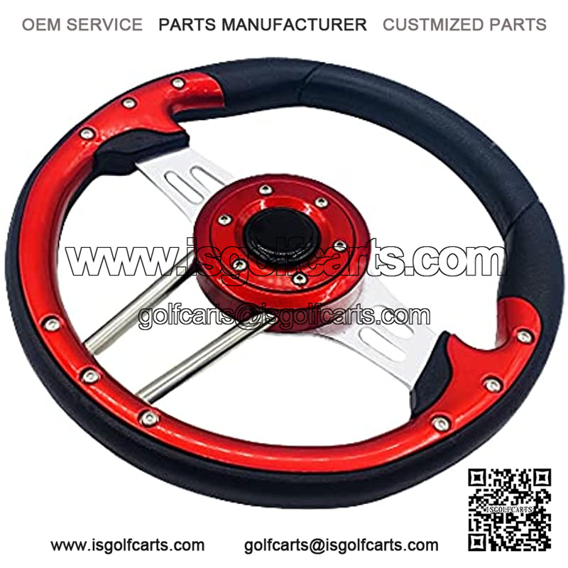12.5″ Golf Cart Steering Wheel Red For EZGO Club Car Yamaha, Comfortable Grip