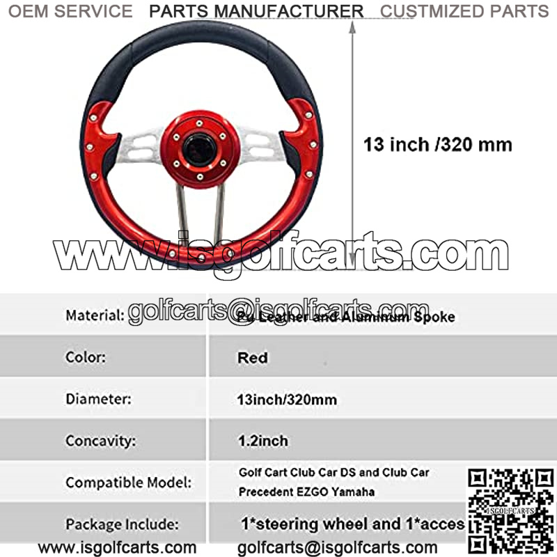 13″ Golf Cart Steering Wheel Red For EZGO, Club Car and Yamaha Most Golf Carts