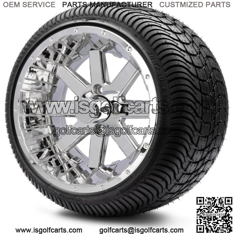 14″ Assault Chrome Golf Cart Wheels and Tires (205-30-14) Set of 4