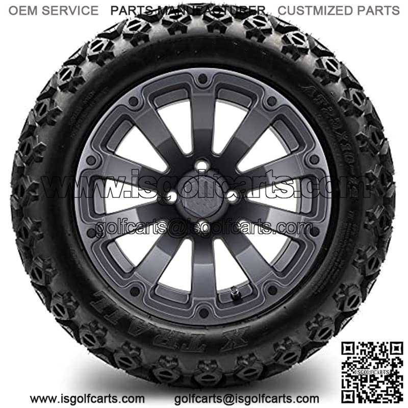 14″ Bomber Matte Gunmetal Golf Cart Wheels and All-Terrain Tires Combo Set of 4