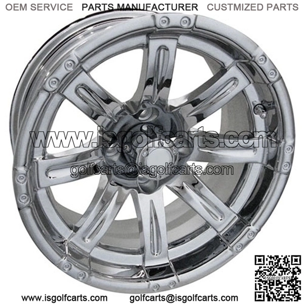 14″ Golf Cart Rim, Chrome Wheel & Center Cap, 14×6 ET-0 Aluminum wheels include center caps. Lug nuts sold separately. PRODUCT INCLUDES 1 RIM.