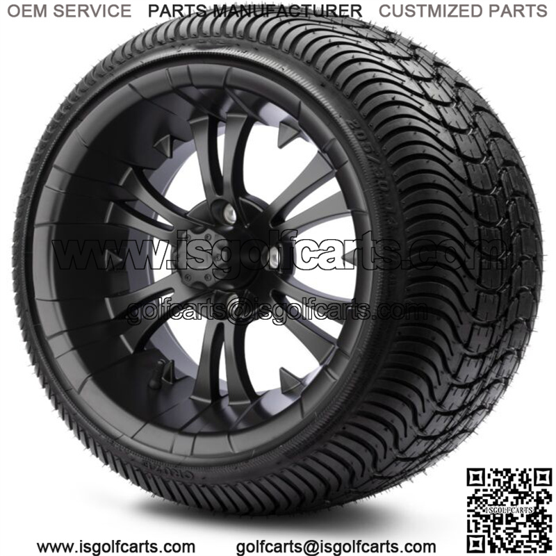 14″ Vampire Matte Black Golf Cart Wheels and Tires (205-30-14) Set of 4