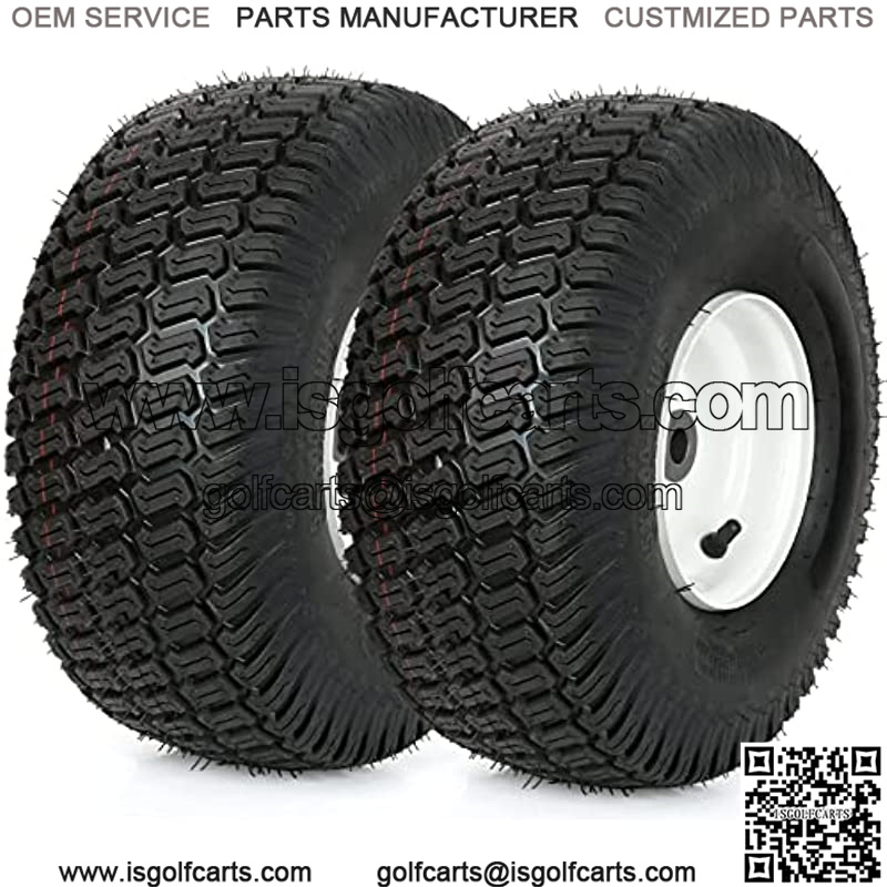 15×6.00-6 Lawn Mower Tires with Rim, 3″ Offset Hub, 3/4″ Bushing, 4 Ply Tubeless, 15×6-6 Tractor Turf Tire, Set of 2