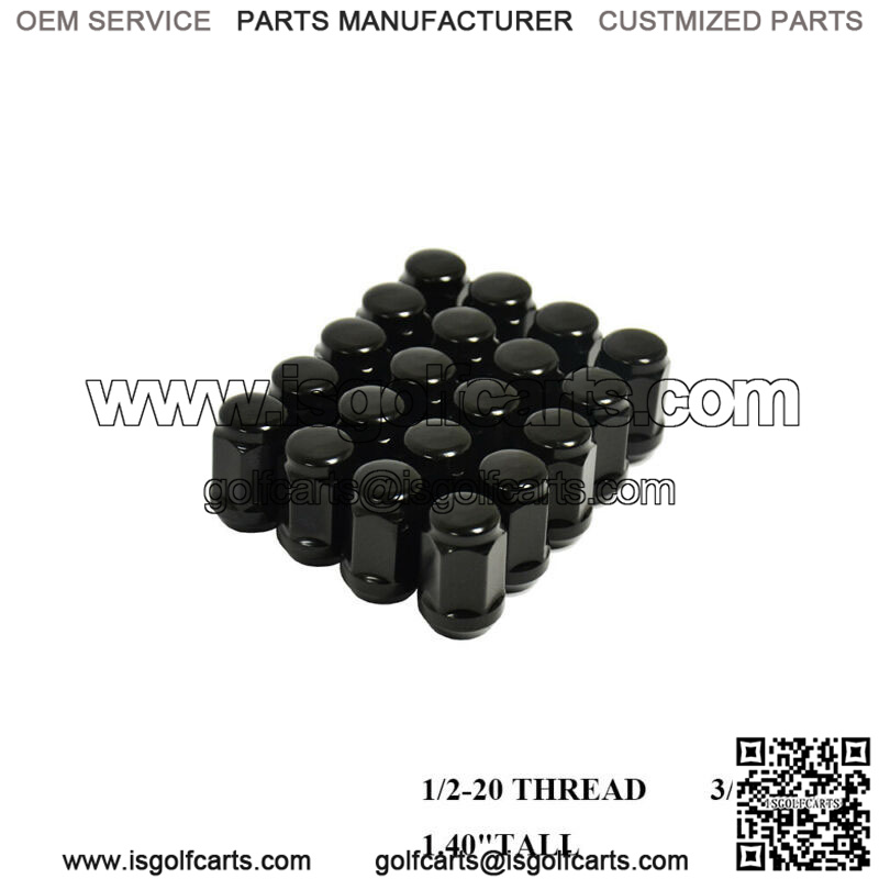 16PC EZ-GO CLUB CAR GOLF CART BLACK LUG NUTS 1/2″-20 CLOSED END FOR GOLF CARTS