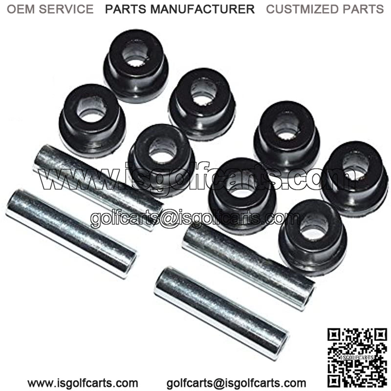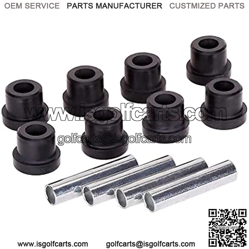 Acts like a cushion for your leaf springs and keeps your cart from rubbing metal on metal. This is an aftermarket bushing set. Includes 8 rubber bushings and 4 metal spacers….enough for 2 springs. Fits the Following Cart(s): Fits EZGO TXT/Medalist Gas and Electric golf carts from 1994-Present. Will not fit on 2008-Up RXV golf carts or 1976-1993 Marathon Golf Carts!!!Product Description (2) Golf Cart Rear Leaf Spring Bushing Kits for EZGO TXT/Medalist (94+) Gas/Electric