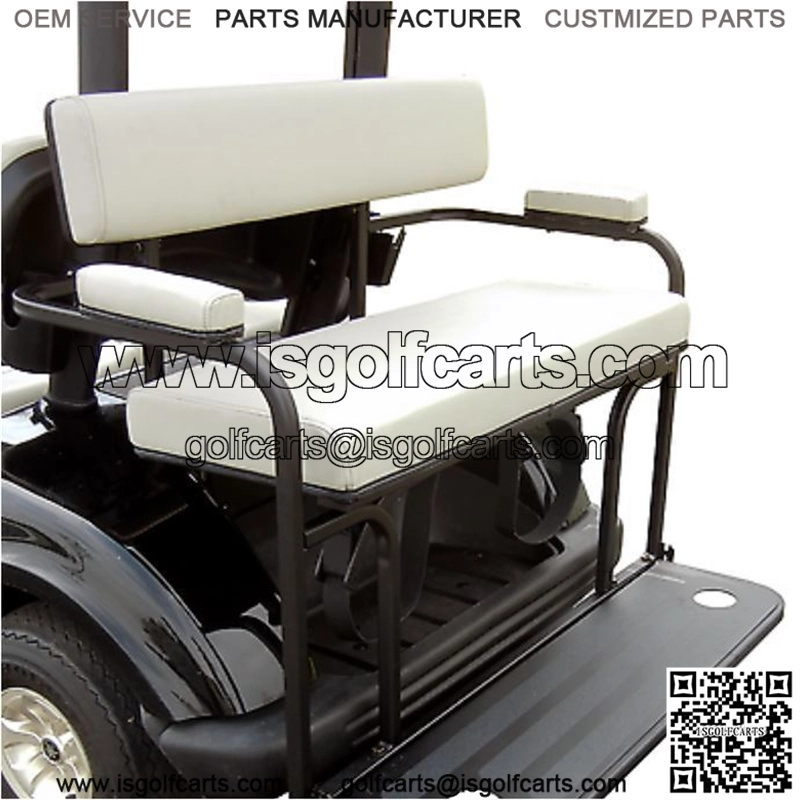 Includes:** ***MUST PROVIDE A COMMERCIAL SHIPPING ADDRESS*** This seat kit can be shipped residential, but there will be a $75 additional fee for shipping, and must be paid before shipment:** . 2 in 1 Golf Cart Rear Seat Combo in White . Fits EZGO TXT Golf Carts . Seat Color: White . Change from seat to golf bag holder in seconds . Color matched cushion . Powder coated steel frame . Arm rest cushions . Checker plated foot board . Upgrade the look of your golf cart with this enhanced seat kit . Take your golf cart on the course with this seat kit. Conveniently transfers from seat to golf bag holder by simply lifting seat up and locking in place . Under seat storage compartment appropriately fits golf bags and serves as the bag rest while they are secured in place with Velcro straps . Not recommended for carts with 80. roof. Long roofs make it hard to take clubs out of golf bag . Installation instructions and all necessary mounting hardware included .